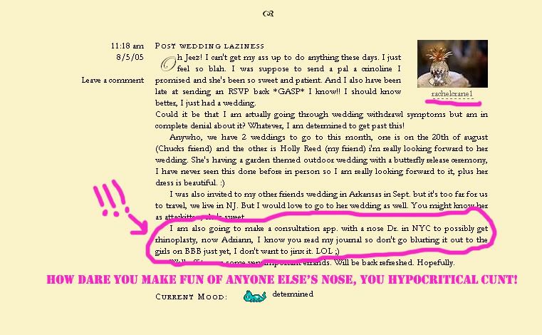 You may be wondering, "QueenCuntastic, how do we know this Rachel Crane cunt is the real culprit? The socially deviant psycho lurking behind http://www.fakyoucunts.blogspot.com/?